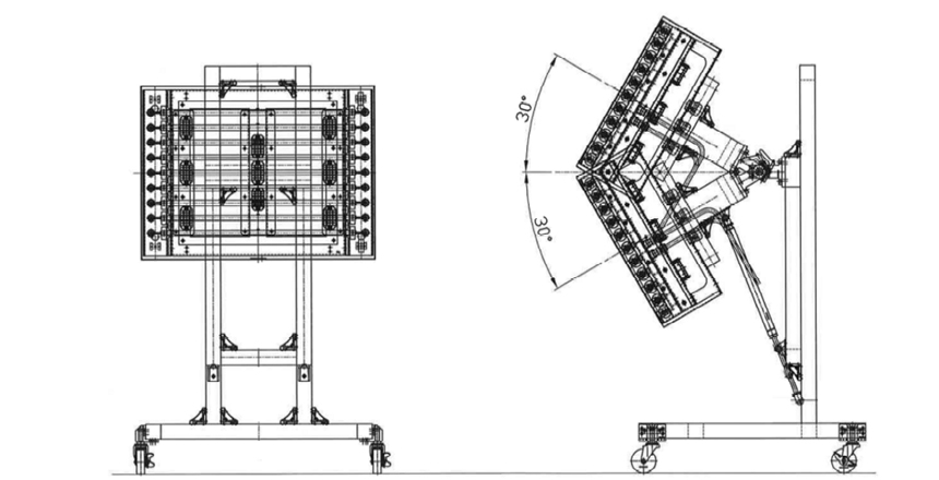 直管型ハロゲンヒーターを使用した平面加熱装置です。水冷筐体になっており、筐体の温度上昇を防ぎます。空気を加熱するのではなく、輻射加熱(光)にてワークを加熱することで高効率で素早い昇温が可能となります。